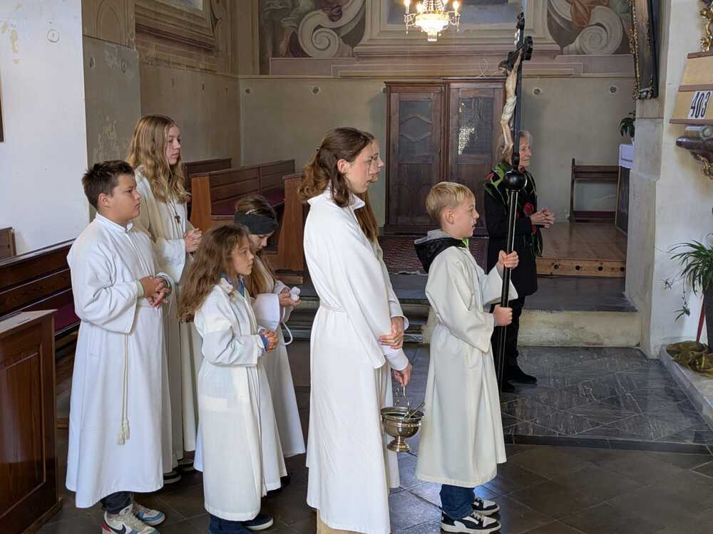 Danach gingen die Ministranten und unser Herr Pfarrer auf den "Kirchfriedhof" um die wenigen Gräber dort zu segnen.