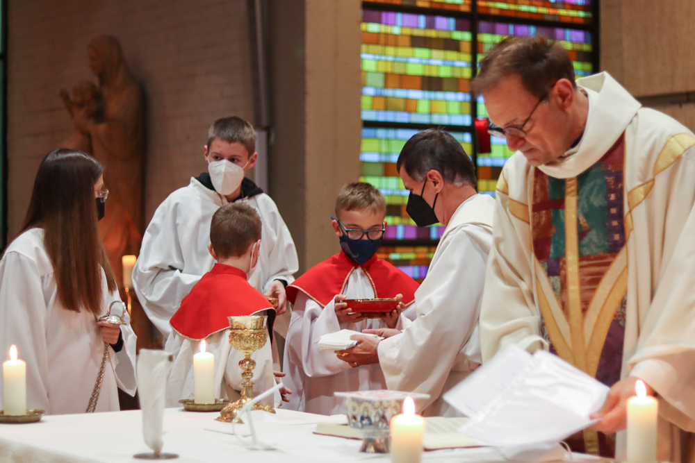 Am Gründonnerstag feierten wir eine gemeinsame Seelsorgeraum-Messe in der Pfarrkirche Lieboch. Mit dabei waren drei Priester, drei Diakone, drei Pastoralreferentinnen, über 20 Ministranten und verschiedene weitere Dienste aus unseren sechs Pfarren.