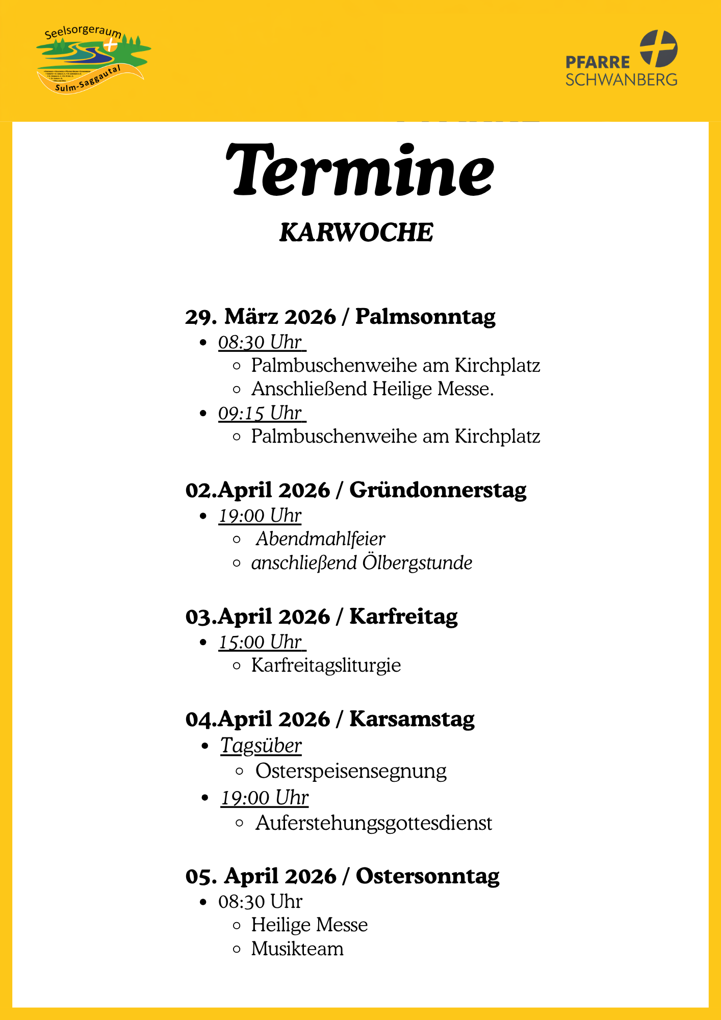 Termine in der Karwoche